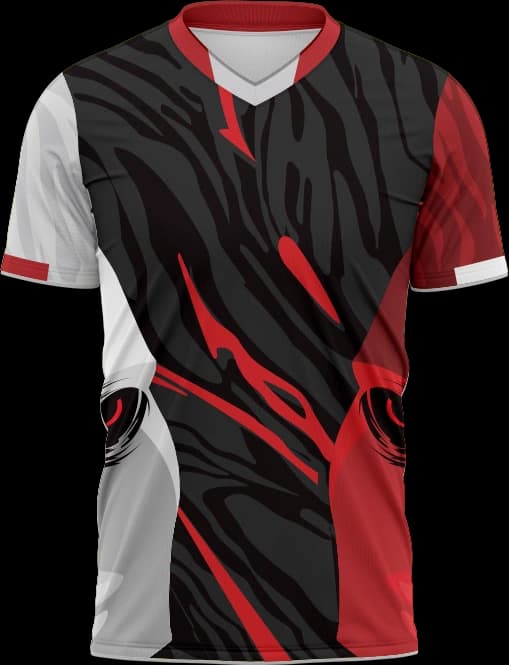 Dominan merah dengan strip hitam — tampilan agresif dan kontras tinggi.
